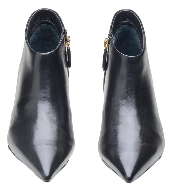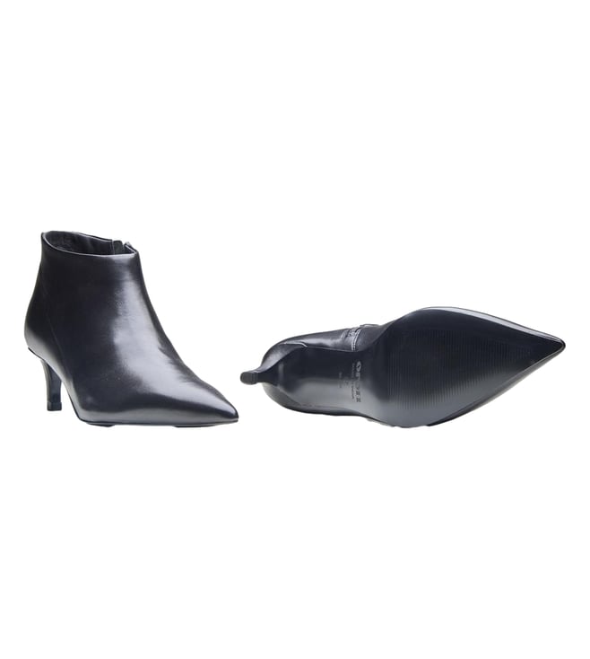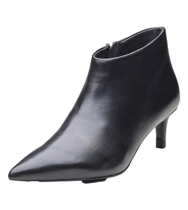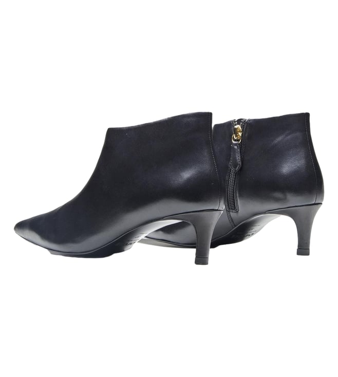 Get so sleek and sophisticated in Alicia Ankle Boots in classic black and soft frappe. The ankle boots are made with a pointed silhouette and have a stylish kitten heel, just enough to add comfort and a touch of style to any outfit or to complement an evening look.