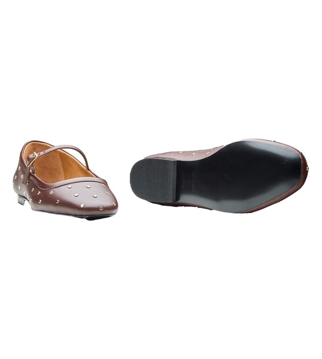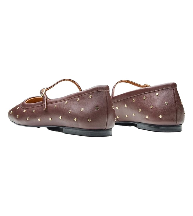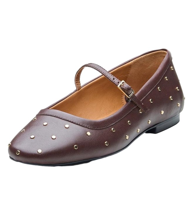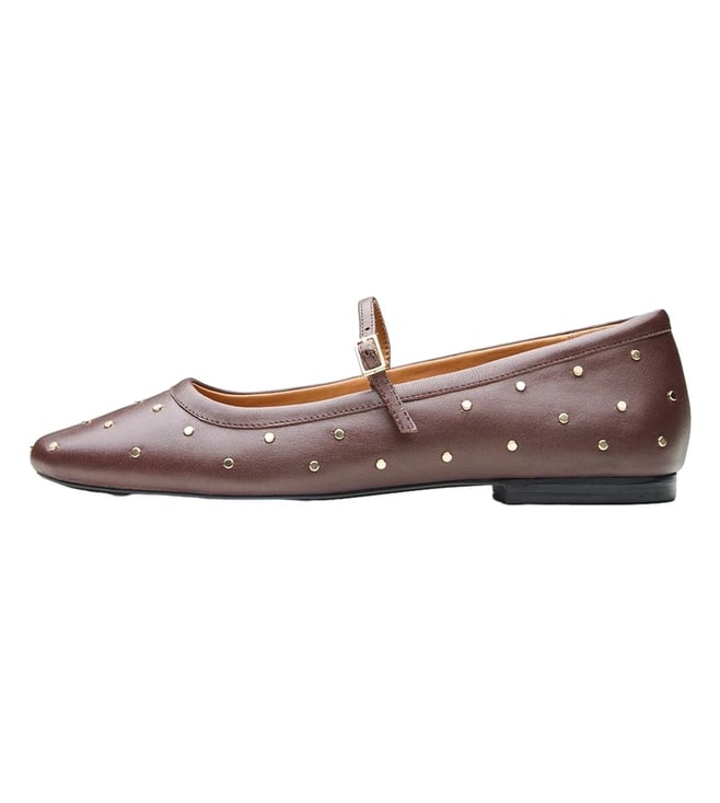Move into our daily grace with Estrella Ballerinas in traditional black and warm brown. Constructed in a smooth silhouette, fine strap, and fashionable stud-like accents, these flat ballerinas are comfortable and stylish enough to be worn with casual attires, skirts, or dresses all day long.