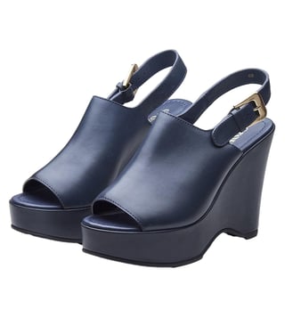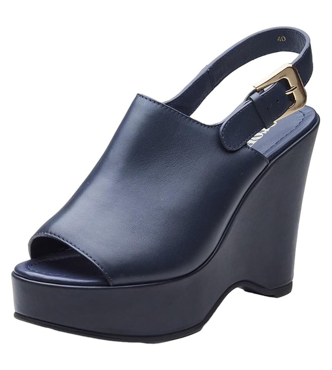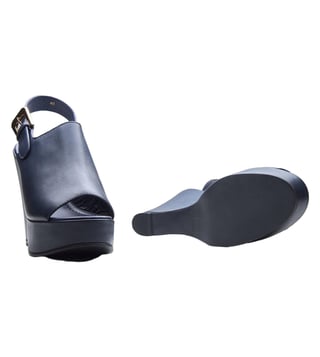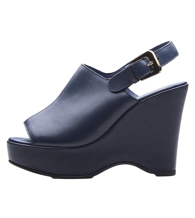 Take your everyday style to the next level by wearing Marta wedge sandals, which come in a flexible navy, rich brown, and traditional black. Their sleek, open-toe front, adjustable buckle strap, and supportive wedge heel all make them comfortable, yet tall in the front, so they can match dresses, skirts or casual clothes.