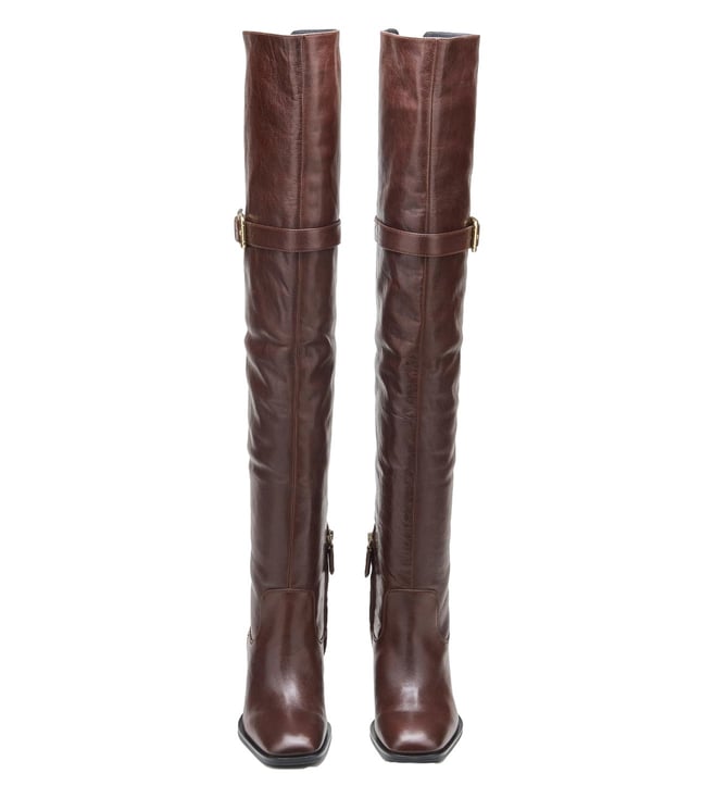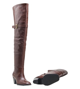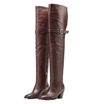 With the deep ebony Paloma Knee High Boots, you may step into dramatic elegance. These boots have a tall, sleek shape and a block heel that supports them. They are both comfortable and stylish so that you can wear them with skirts, dresses, or slim-fit jeans for a variety of day-to-night appearances.