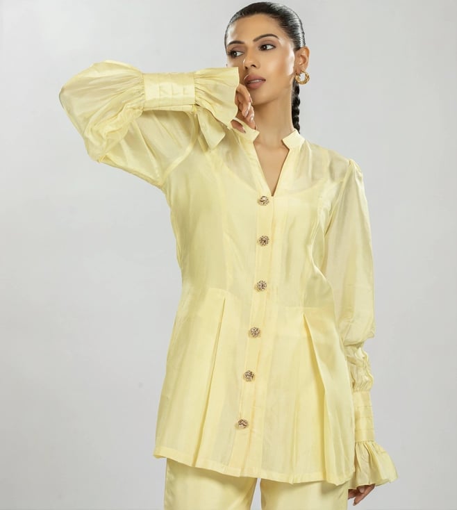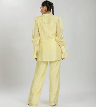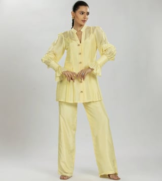 Oru Pret Yellow Bamboo Silk Co-Ord Set Tunic With Pant