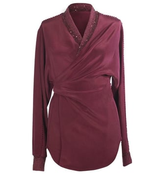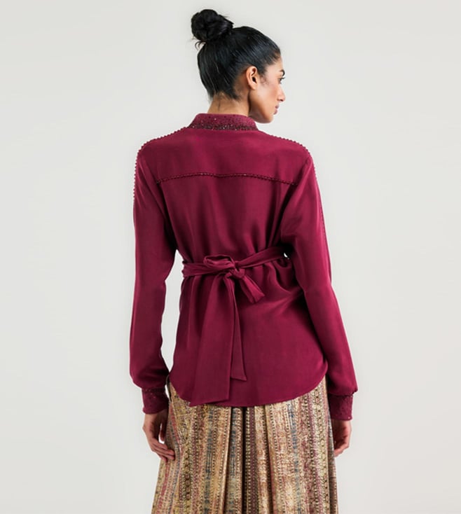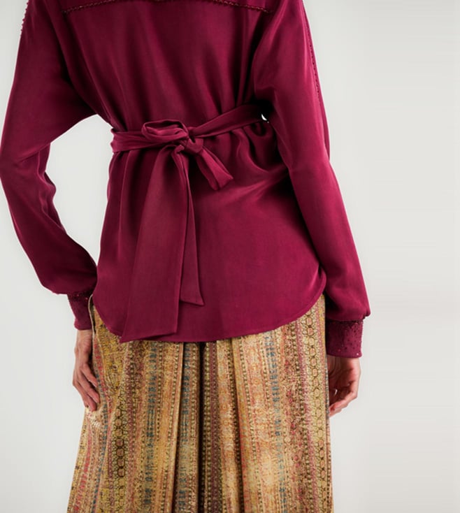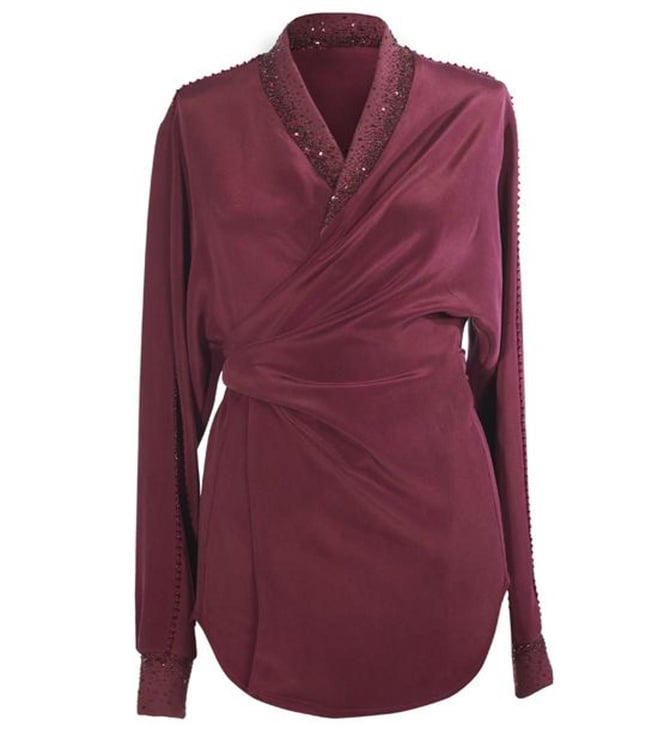 Silk cr pe wrap top with tonal bead details, can be worn open or closed. Disclaimer: all other items in the image are only for display purposes and will not be a part of the delivery content. Product colour may slightly vary due to photographic lighting sources. Country of origin india.
