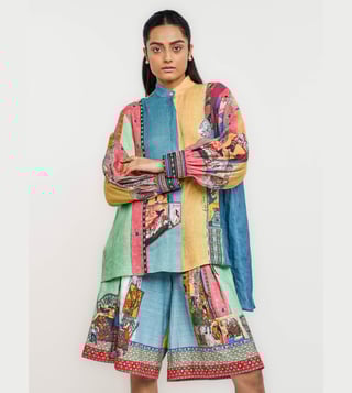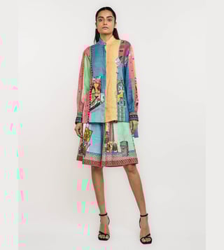 OTT Tarun Tahiliani Multi Linen Regular Fit Art Shirt