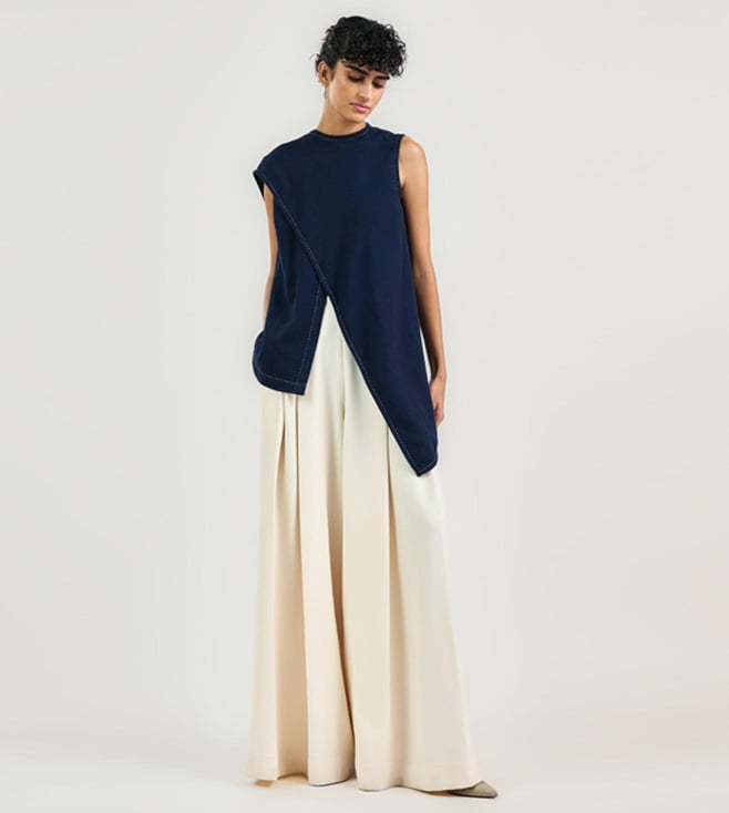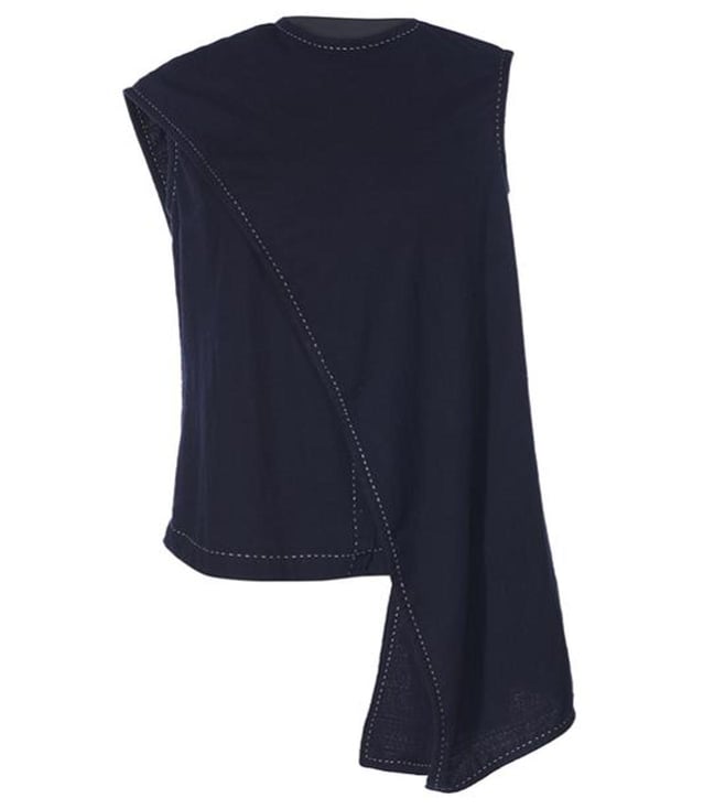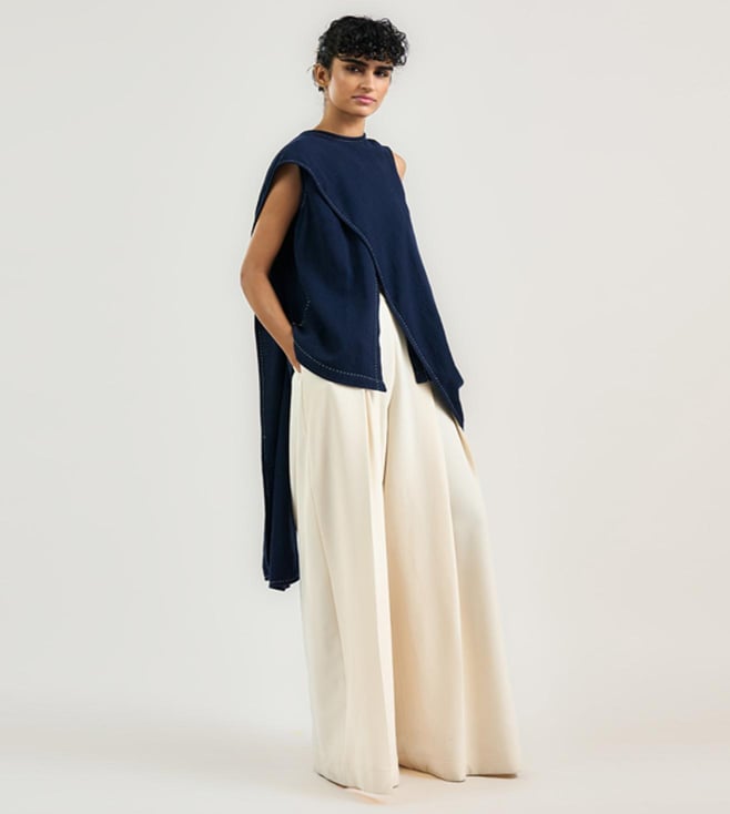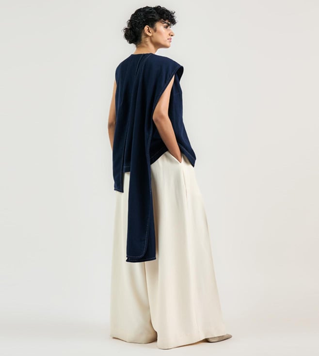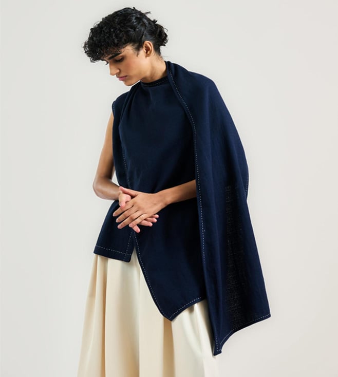 OTT Tarun Tahiliani Navy Cotton Moss Relaxed Fit The Tailored Scarf Shirt