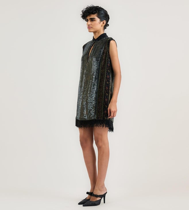 Black Crinkle Net Regular Fit The Crinkled Evening Kaftan