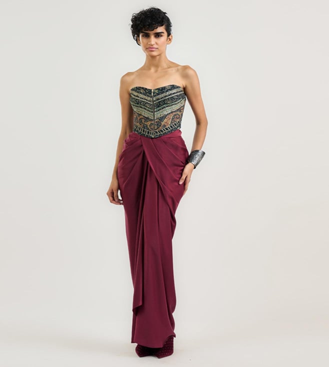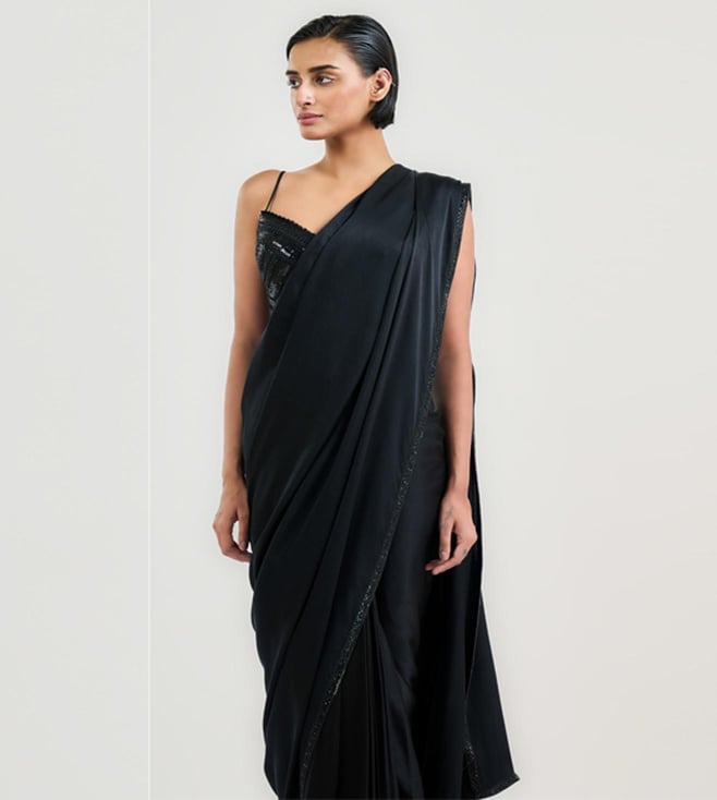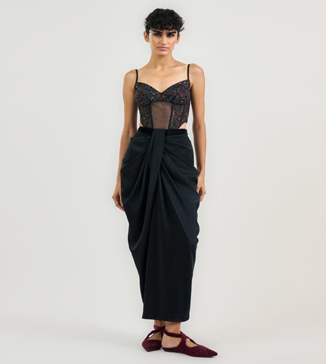Black Polyester Regular Fit The Embroidered Evening Bodysuit