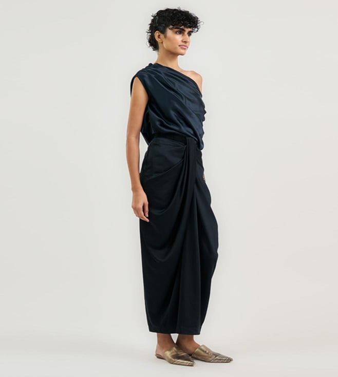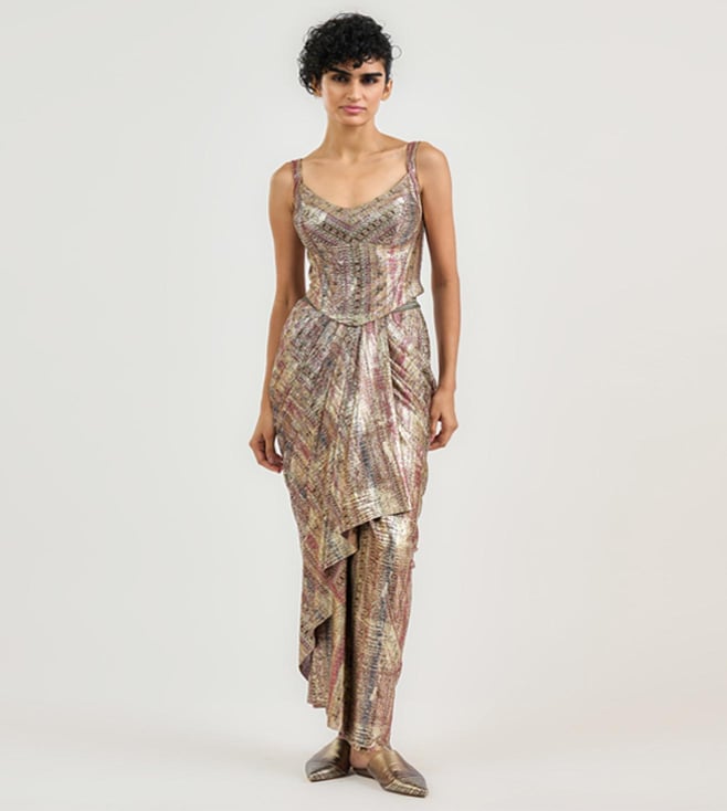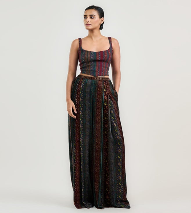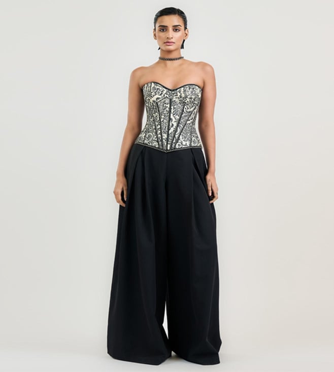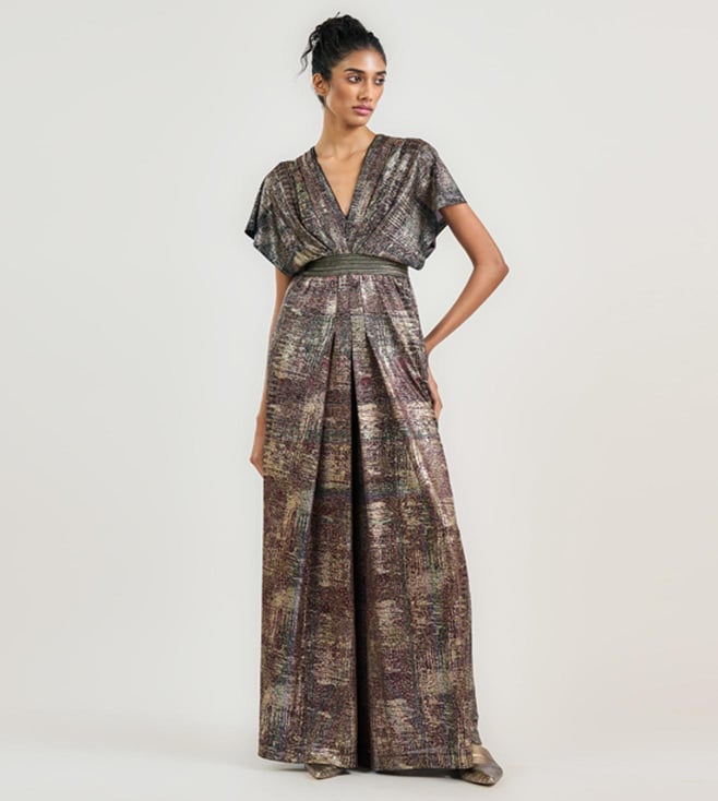 Black Foil Jersey Relaxed Fit The Metallic Jamawar Jumpsuit