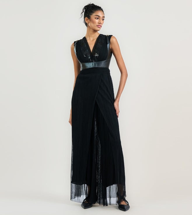 Black Crincle Tulle Relaxed Fit The Crinkled Cocktail Jumpsuit