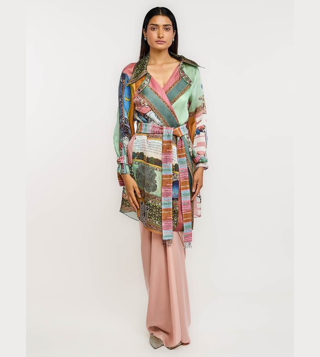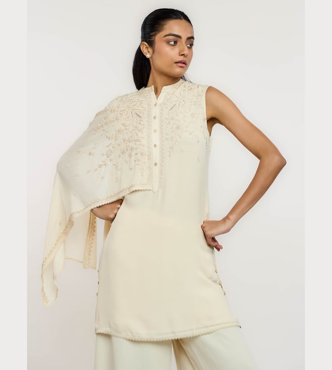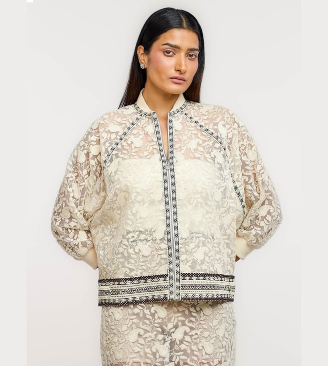 Ivory Nylon Regular Fit The Embroidered Jamawar Co-ord Set