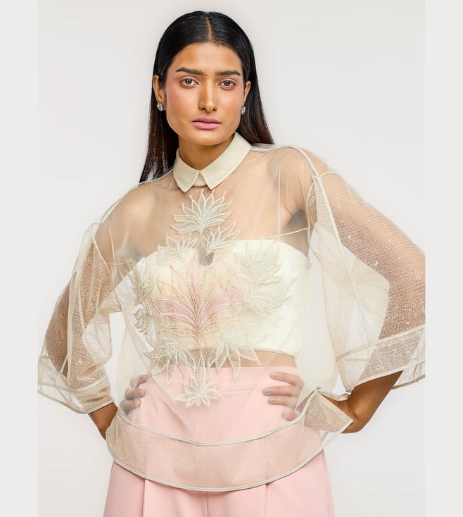 Ivory Nylon Regular Fit The Embroidered Jamawar Co-ord Set