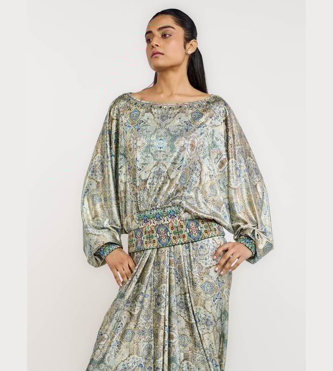 Black Foil Jersey Relaxed Fit The Metallic Jamawar Jumpsuit