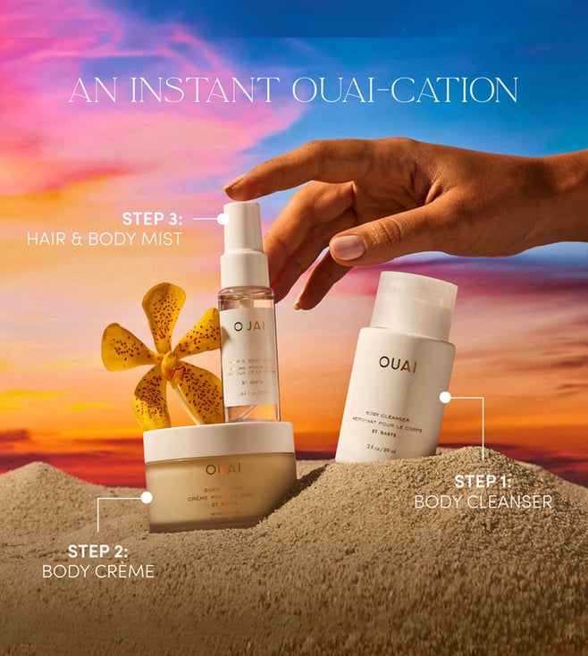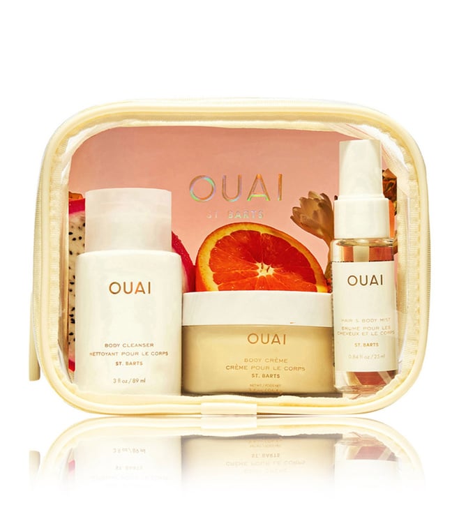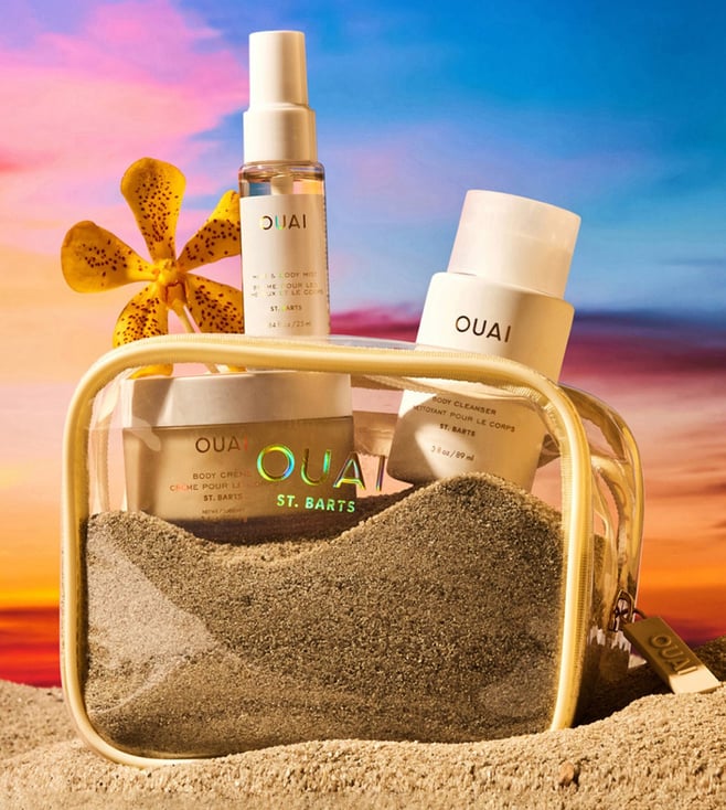Ouai's vacay is only a shower a-ouai kit is a limited edition collection that brings the spirit of St. Barts straight to your bathroom. Infused with Ouai's signature St. Barts scent, a lush blend of dragon fruit, orange blossom, tuberose and musk, this indulgent set transforms your cleansing routine into a sensorial escape. Whether you¿re winding down after a long day or prepping for a night out, each product in this kit works in harmony to leave your skin soft, hydrated and beautifully fragranced with the essence of island paradise.