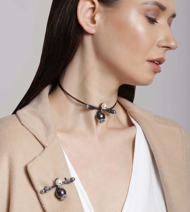 Recapture your love for exquisite jewellery with this beautiful Outhouse OH Celeste iridescent Cosmos choker. This is crafted with care using brass which is sure to impress you. The adornment of white and iridescent purple swaroski pearl magnifies its overall grace.