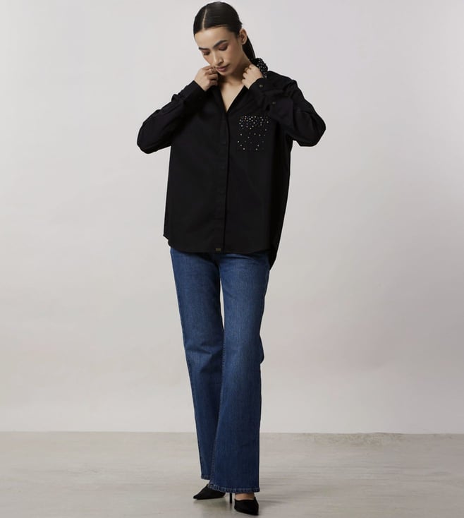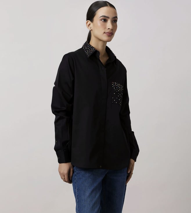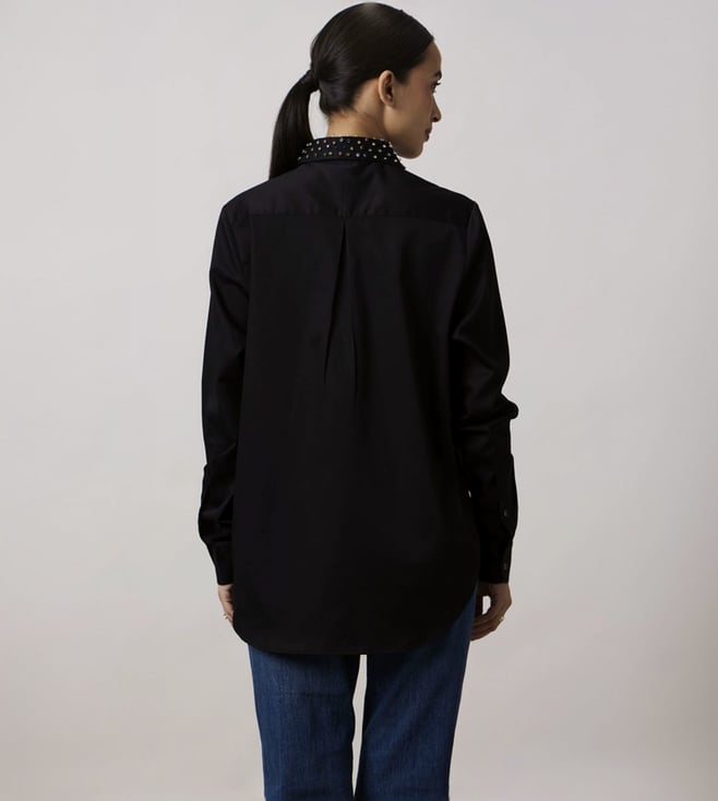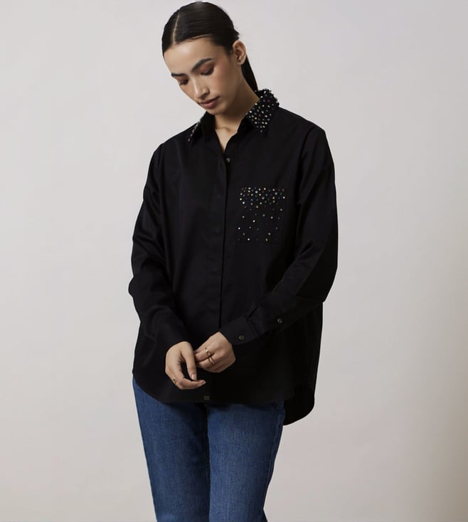 Pallavi Swadi Black Multicolour Swarovski Studs Full Sleeve Shirt
