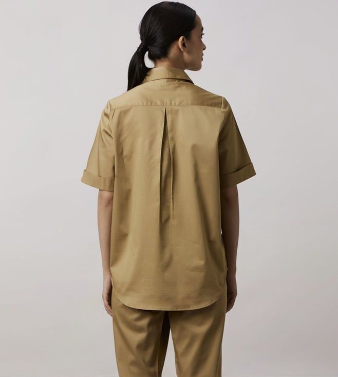 Introducing the cotton satin sand collar pocket swarovski shirt with pant co-ord set. This ensemble epitomizes elegance and sophistication, featuring a refined shirt with a swarovski-embellished collar pocket, paired with matching pants. Crafted from premium cotton satin, it offers both style and comfort. Elevate your wardrobe with this luxurious co-ord set, perfect for making a chic statement on any occasion. Disclaimer: Product colour may slightly vary due to photographic lighting sources. Country of Origin - India.