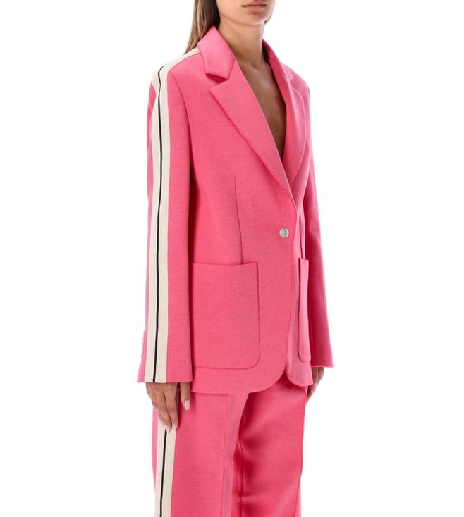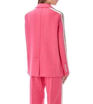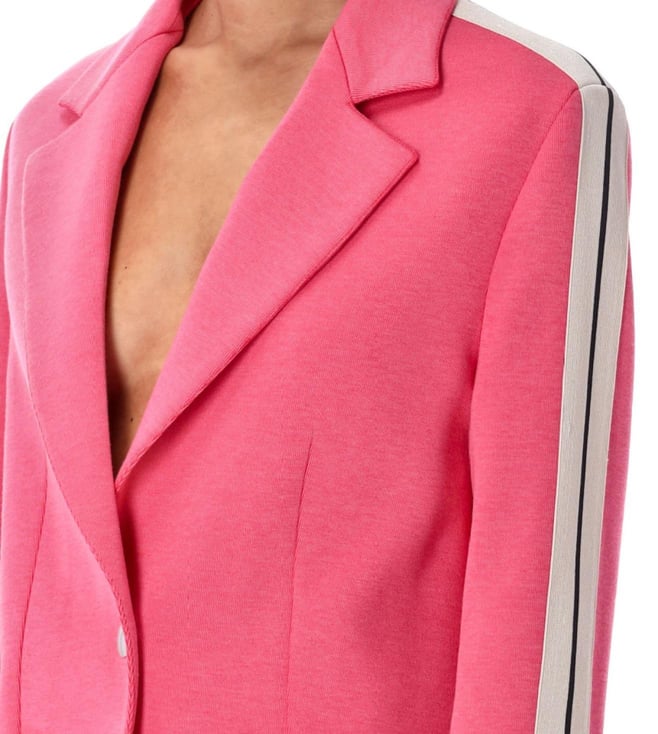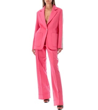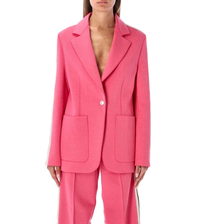 Elevate your wardrobe with this striking fuchsia blazer, a vibrant masterpiece in solid pattern. Crafted with precision, it features long sleeves and a sophisticated lapel collar, exuding timeless elegance. The outer fabric, a luxurious blend of 52% cotton and 48% polyester, ensures comfort and durability, while the 100% cupro lining offers a silky touch against the skin. Designed for the modern woman, this blazer is the perfect statement piece, seamlessly blending bold color with classic tailoring.