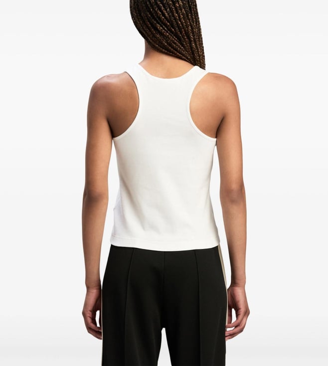 White Logo-Embroide Ribbed Regular Fit Tank Top