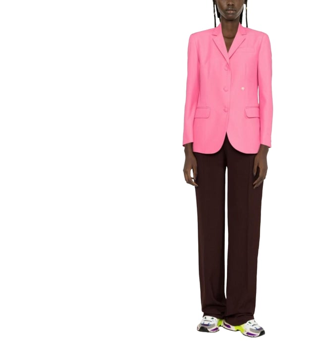 Peach Embroide Nylon Woven Design Sweater