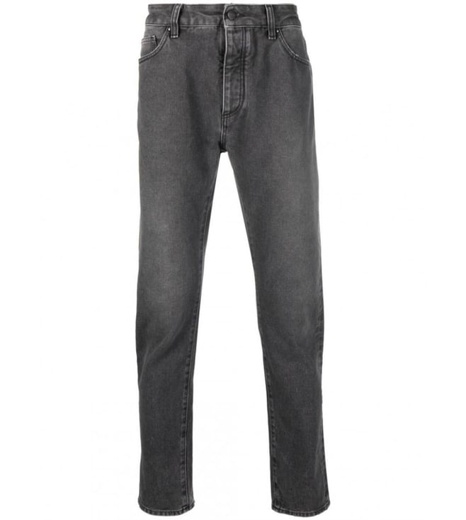 Charcoal Logo Denim Faded Straight Fit Jeans