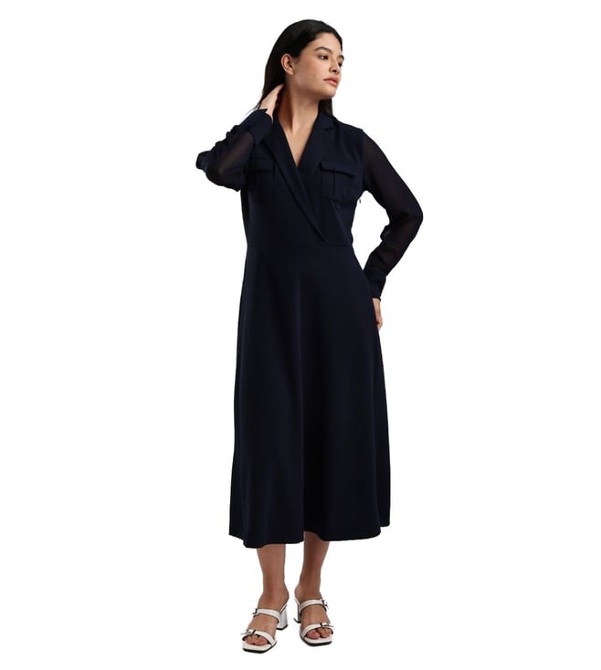Dark Night Navy Cotton Slim Fit Dress