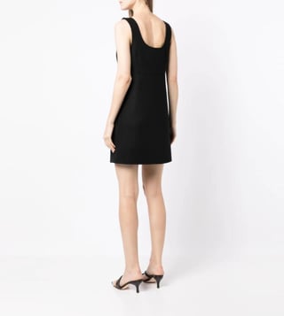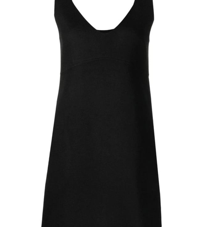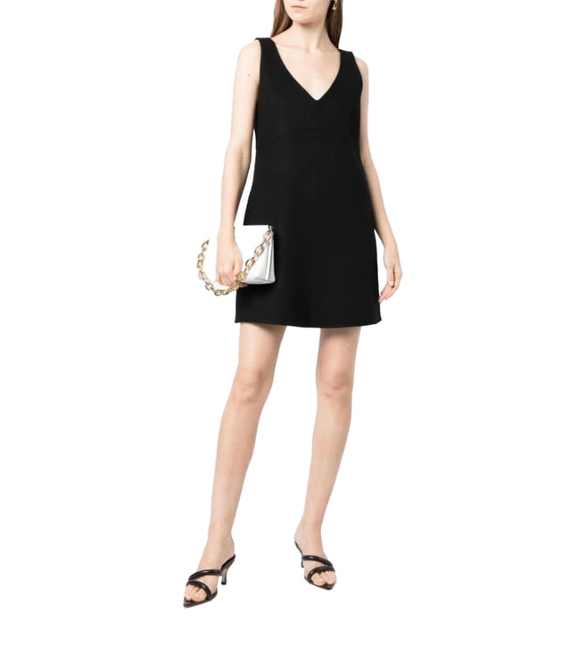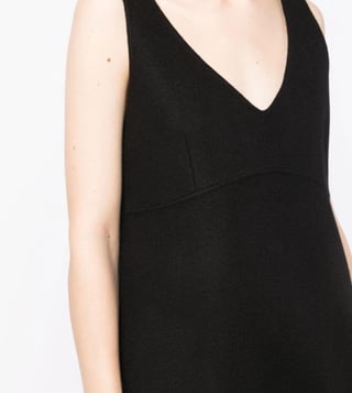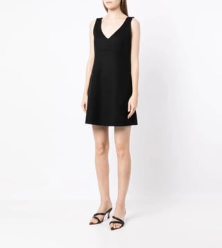 Embrace timeless elegance with this stunning black dress, crafted from luxurious 100% wool. Its solid pattern exudes sophistication, while the sleeveless design and V-neckline offer a modern, alluring touch. The dress drapes gracefully, accentuating the silhouette with effortless charm. Perfect for any occasion, its sleek closure ensures a seamless fit, making it an essential addition to any wardrobe. This dress is a celebration of classic style and contemporary flair, designed for the confident, stylish woman.