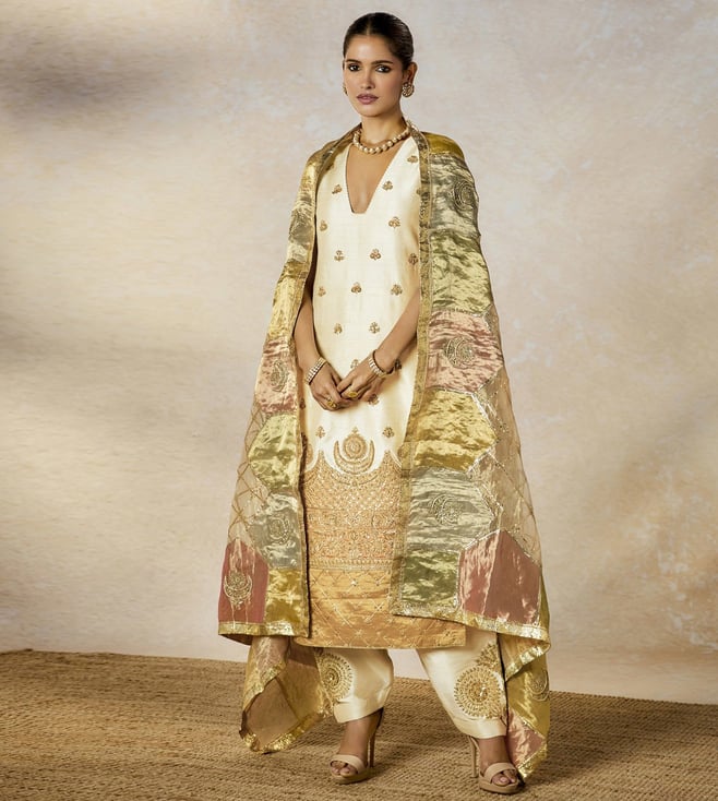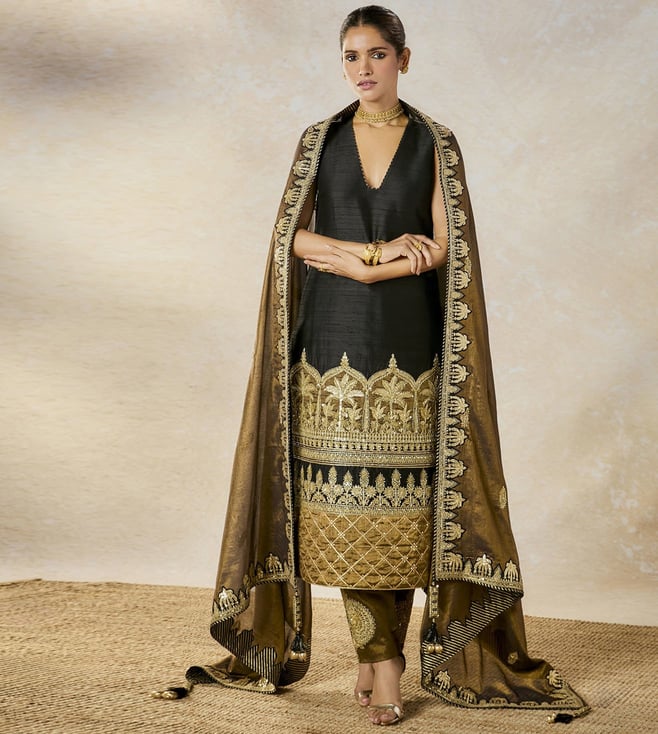 Off White & Black Tazhib Chevron Printed Embroidered Kurta And Salwar