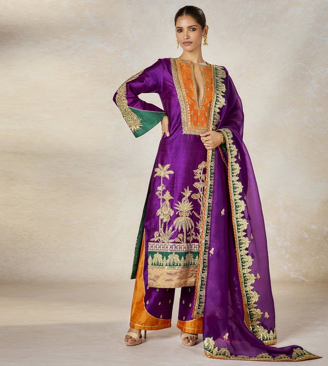 Meraki Rosy Brown & Purple Chanderi Kurta with Salwar and Dupatta