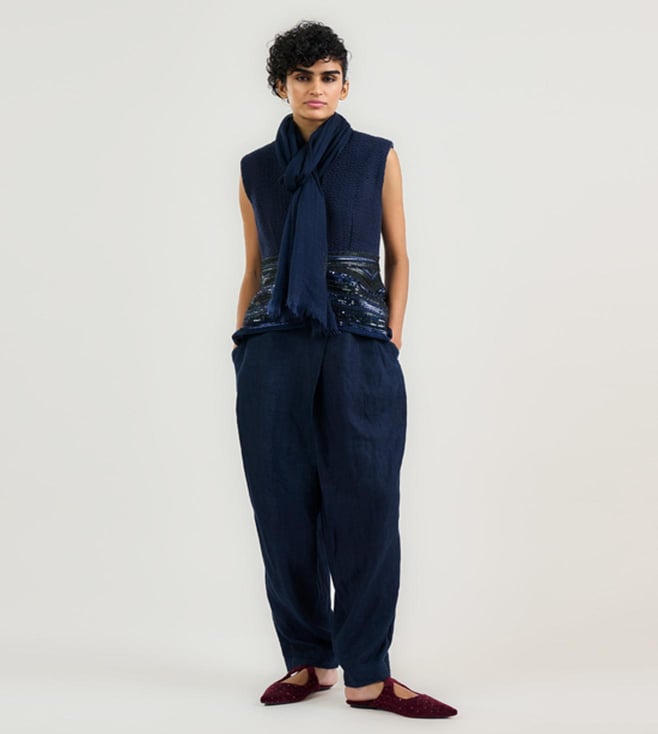 Navy Linen Relaxed Fit The Tailored Salwar Pants