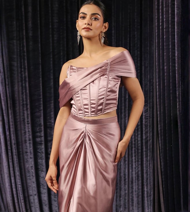 Black Silk Regular Fit Embroidered Taffeta Top With Metallic Skirt