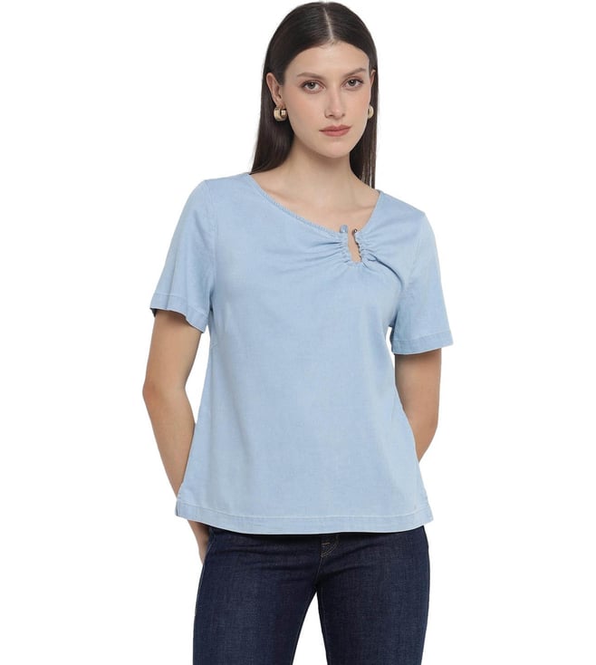Light Pearl V1 Graphic Flower Printed Slim Fit Top
