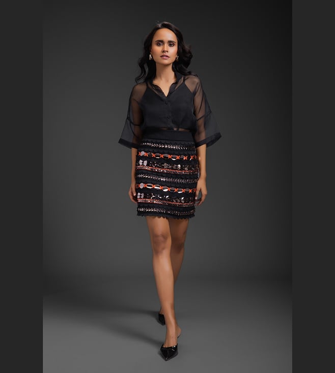 Black Hand Embellished Relaxed Fit Blouse