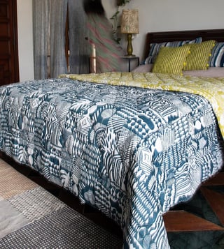 Freedom TreePatchwork Cotton Voile Blue And Lime Single Quilt