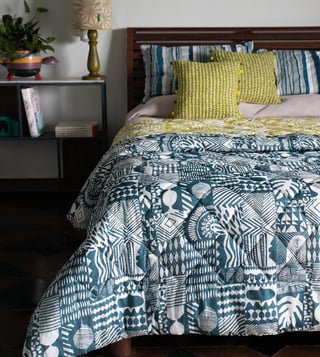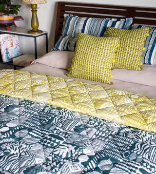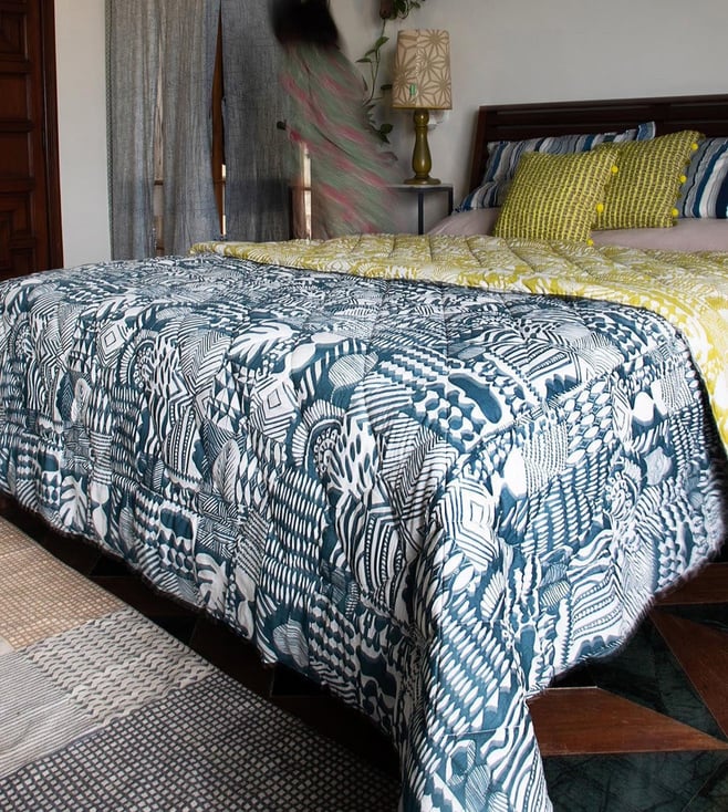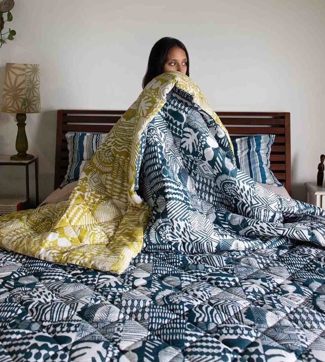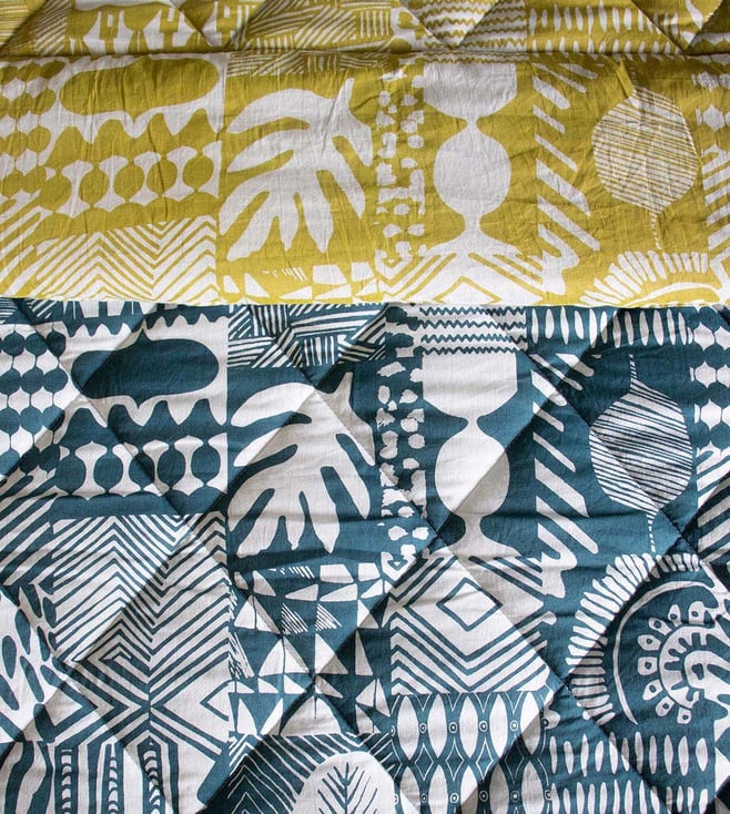 Add a touch of stylish comfort to your home with this quilt from Freedom Tree! This LIME/BLUE patchwork quilt is crafted from soft COTTON VOILE and is perfect for snuggling up on warm nights. Disclaimer: All other items in the image are only for display purposes and will not be a part of the delivery content. Product colour may slightly vary due to photographic lighting sources. Country of Origin - India.