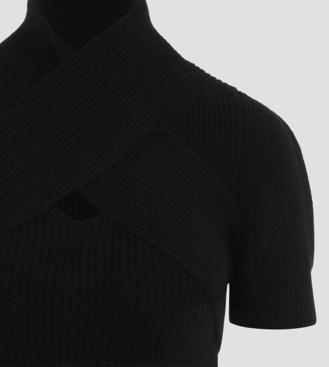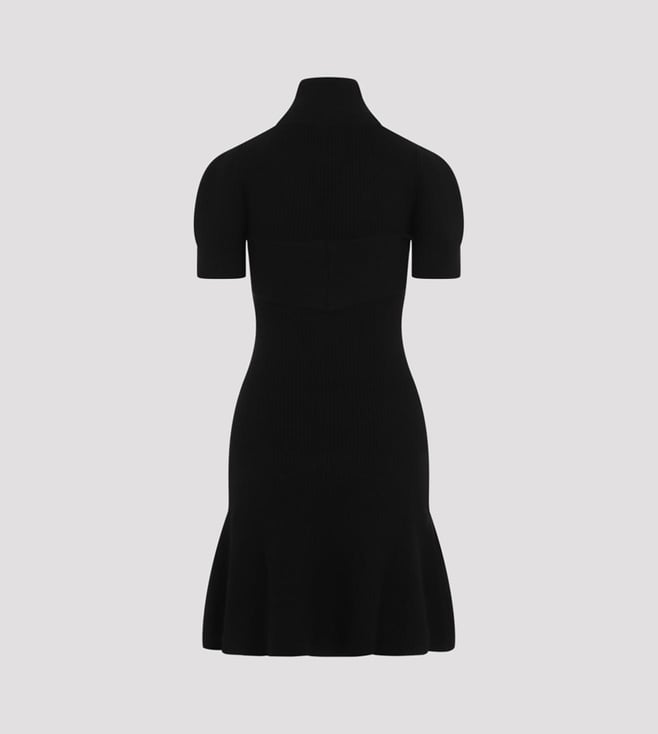 Patou Black Wool Scarf Draped Dress