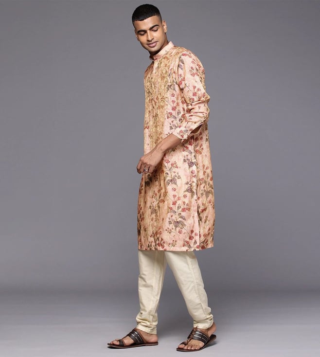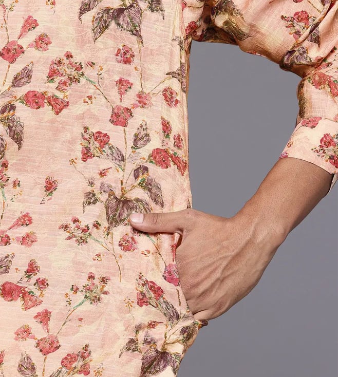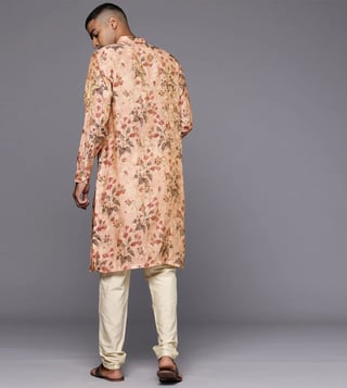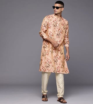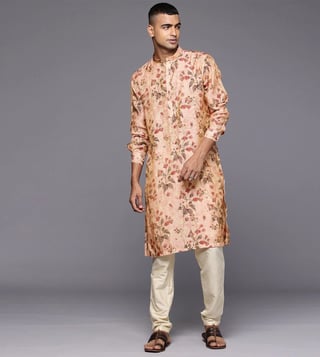 Elevate your festive style with the Patrah Pink Silk Relaxed Fit Printed Kurta for men. This long-sleeve kurta combines elegance and comfort, perfect for special occasions. Disclaimer: All other items in the image are only for display purposes and will not be a part of the delivery content. Product colour may slightly vary due to photographic lighting sources. Country of Origin - India.