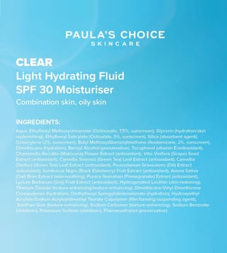 This ultra-light daily hydrating fluid is a synthetic, shine-free fluid that visibly minimizes pores and helps protect skin from sun damage to maintain a healthy and clear complexion. It helps reduce early signs of ageing, alleviates dryness and flaking and leaves a matte finish.