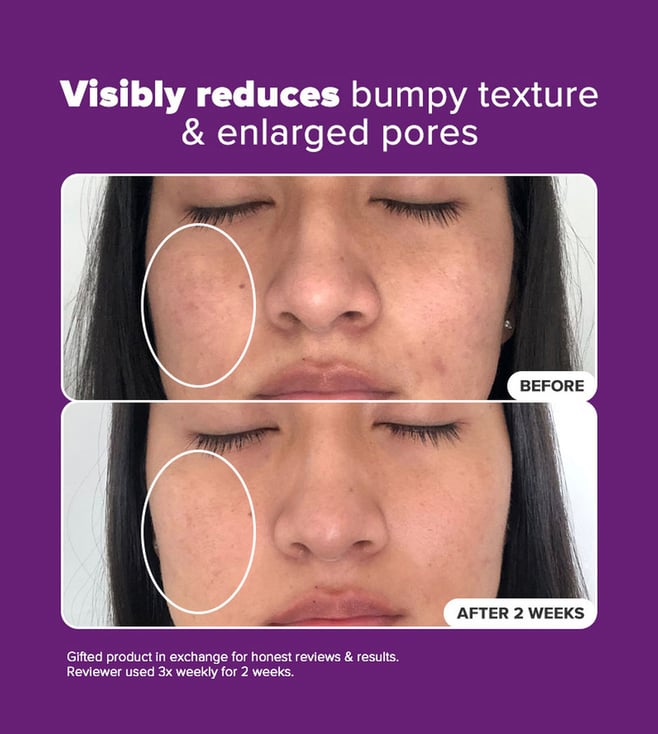 Smoothen the open pores of your skin with this serum. It is a highly concentrated niacinamide serum that effectively tightens and minimizes the look of sagging pores and rough bumps caused by age or sun damage. It is suitable to rectify uneven skin tones and for all skin types.