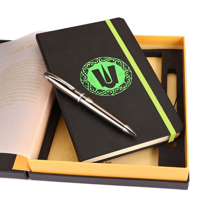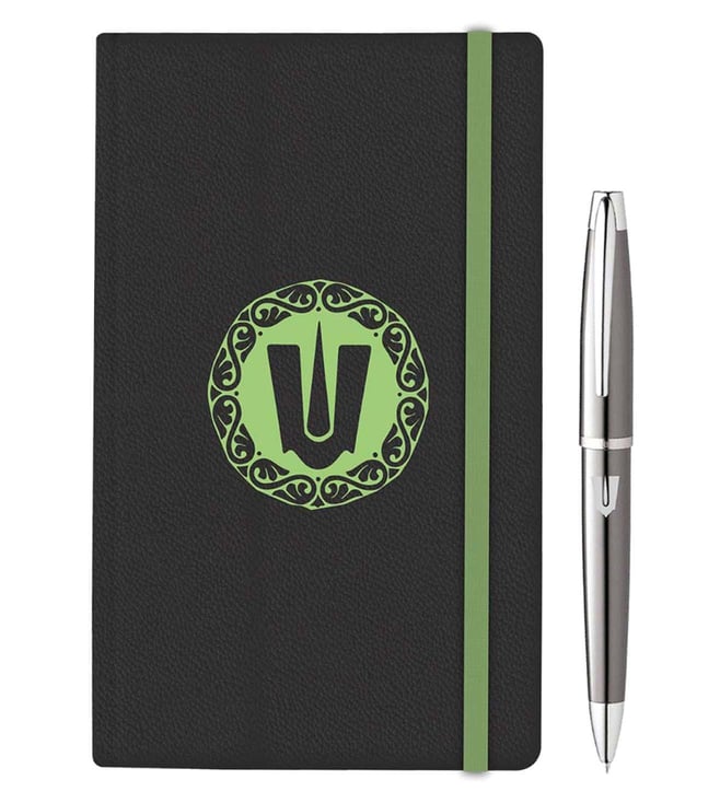 Gift Set Divinity Series with A5 Notebook Black & Green & Carina A0025 Ball Pen Gun Metal