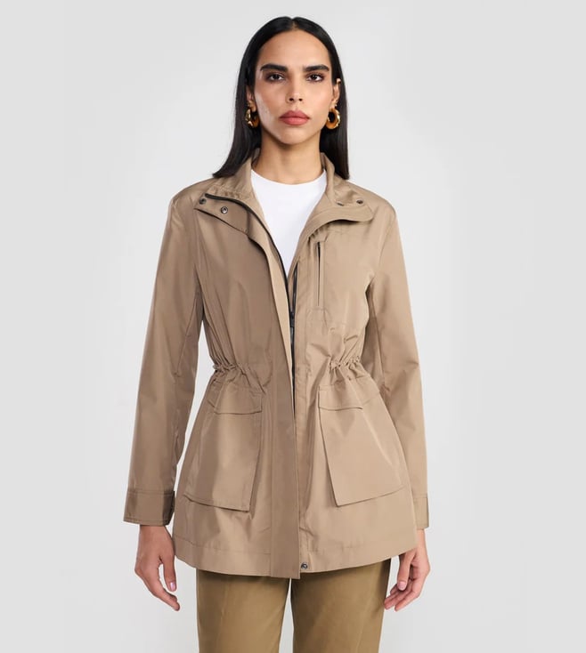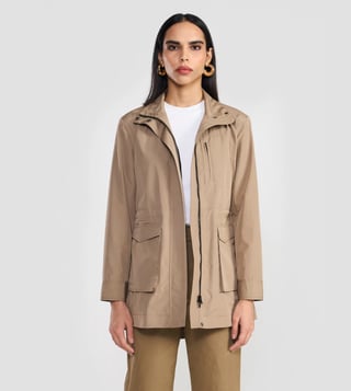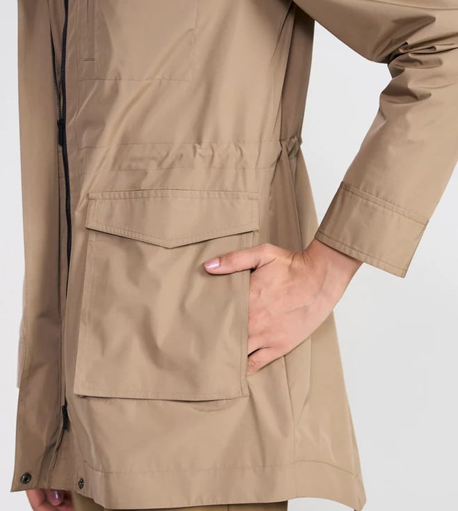 Contemporary comfort. This parka is crafted from ultra-light waterproof technical fabric with fully unlined inside construction depicting modern minimal tailoring and Perona's aesthetics. Features collar with zipped hood insert, five functional pockets, an easy drawstring waist hem and concealed front zipper opening.