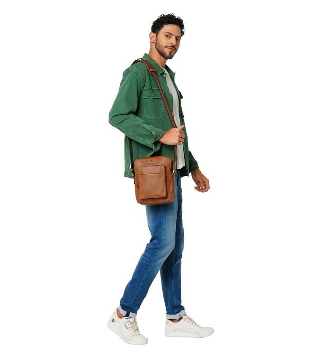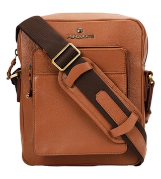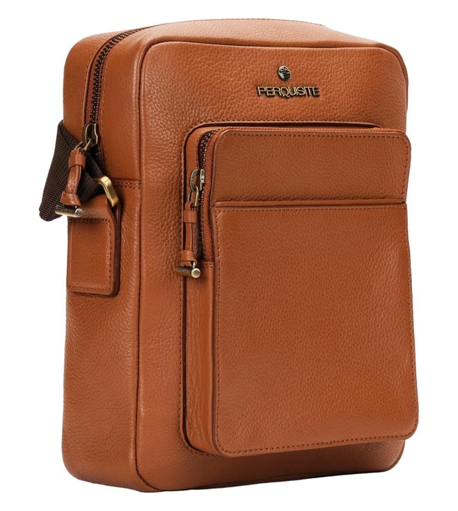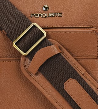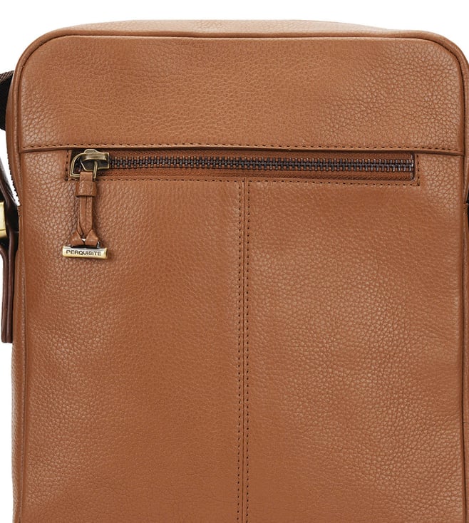 PERQUISITE Dark Tan STACY Textured Leather Cross Body Bag
