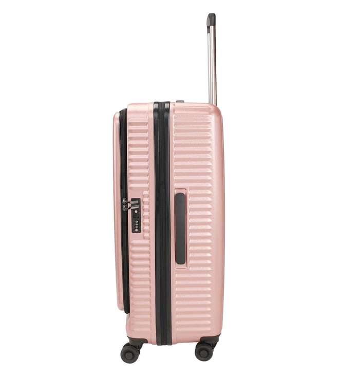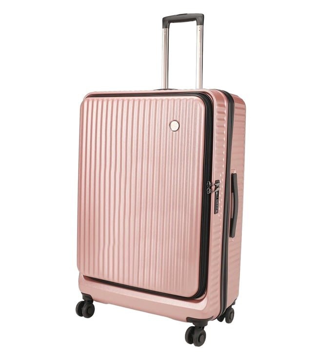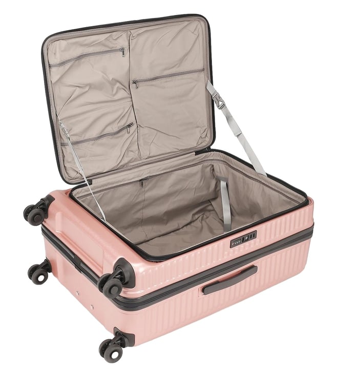 The PERQUISITE yita 28 hard rose luggage must be the next addition to your luggage collection. An eye grabbing innovative design sets the tone for every trip you take. Constructed of abs the yita range provides strength, lightweight and durability to give your belongings the best in protection with style. Sitting pretty on spinners, this hardside puts no weight on your arm and opens up to a fully lined interior with a zippered compression panel and cross straps to keep your belongings in order.