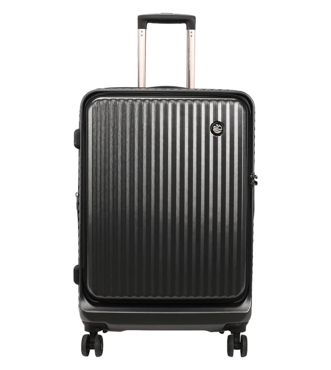 Black Striped Medium Hard Checked Luggage