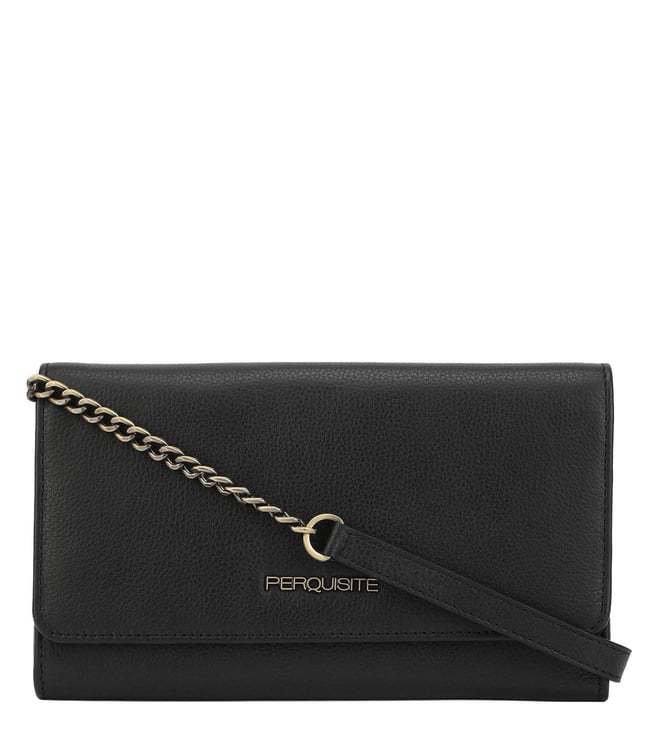 Black STACY Textured Leather Cross Body Bag