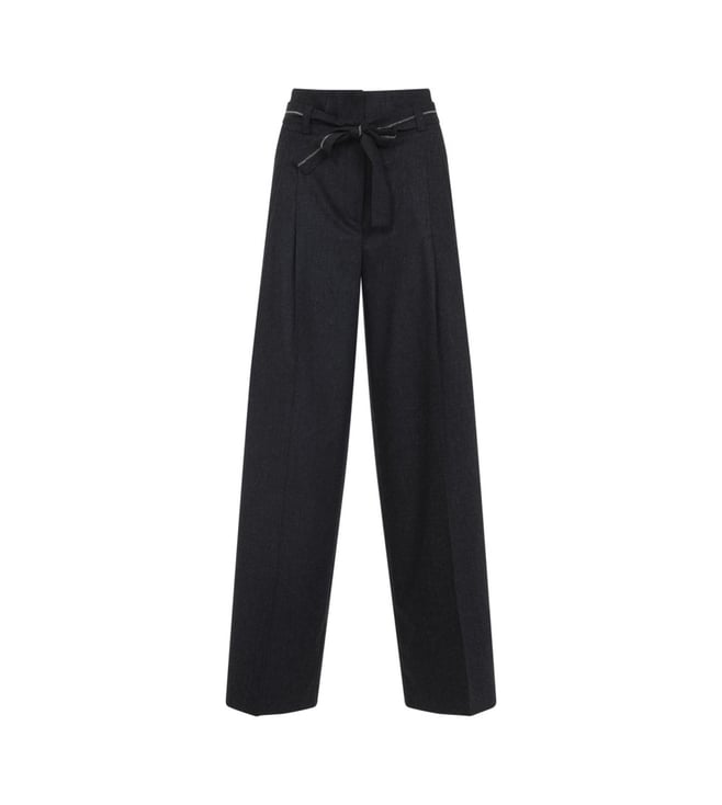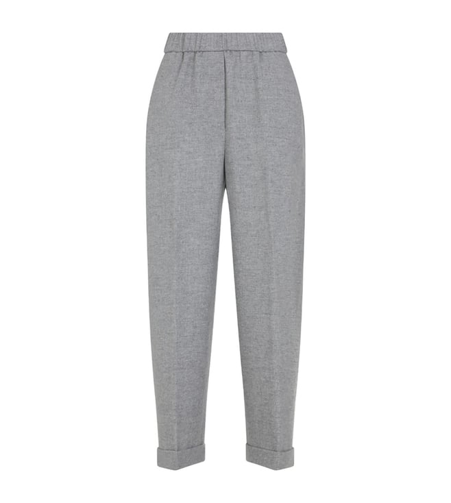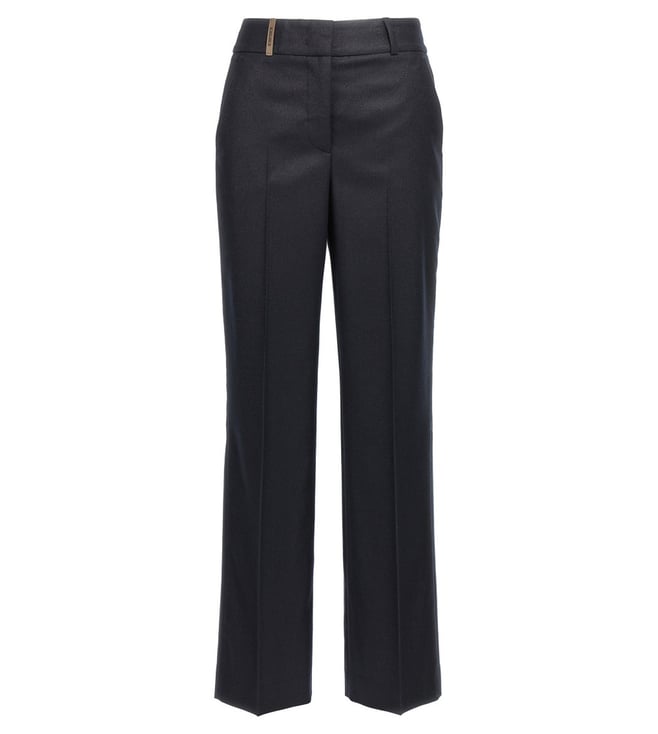 Grey Straight Fit Wool Pants