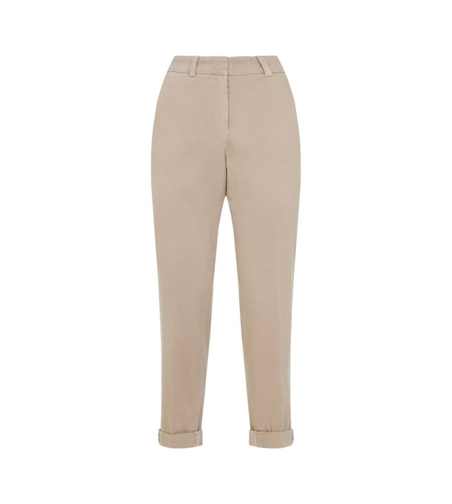 Beige Tapered Fit Trousers