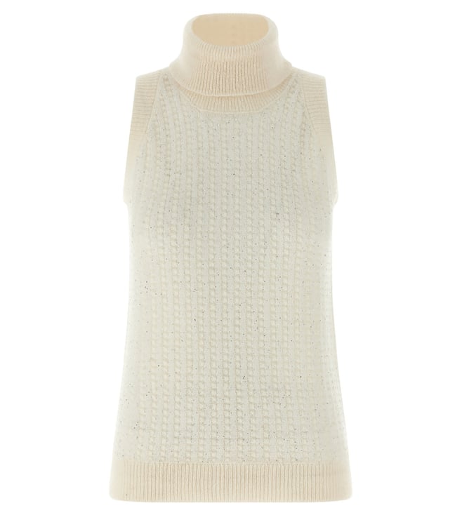 White Embellished Tricot Sweater
