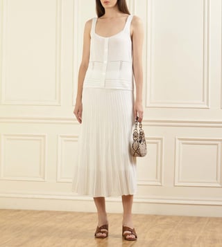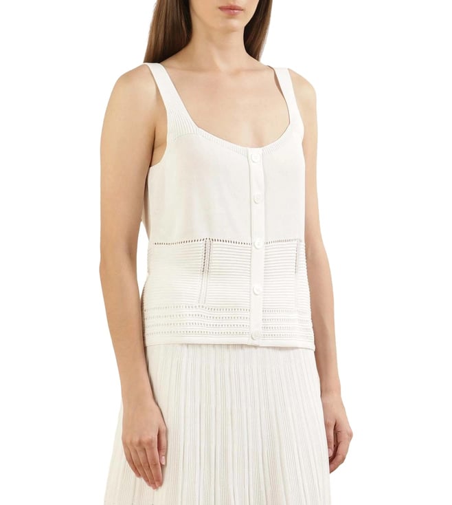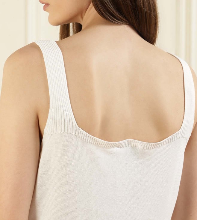 Curate a stunning look by wearing this white sleeveless top from Phase Eight. Tailored to sartorial perfection from premium quality fabric, it assures a soft and soothing touch against the skin. The scoop neck boasts of exclusive appeal.