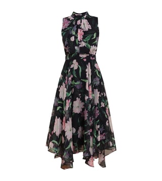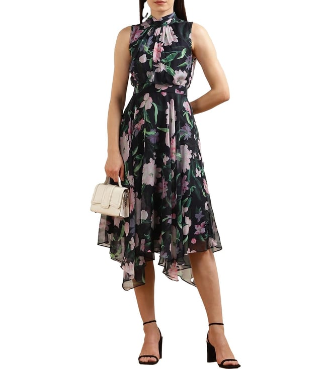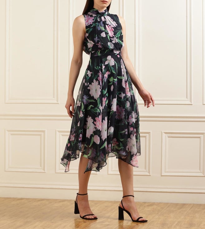 Phase Eight Women Navy Floral Asymmetric Hem Dress