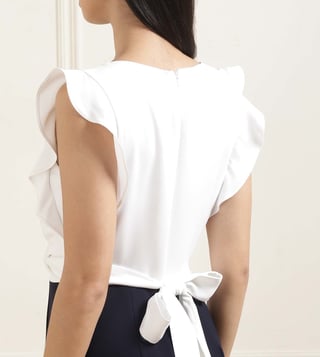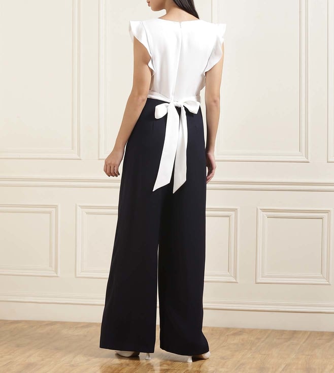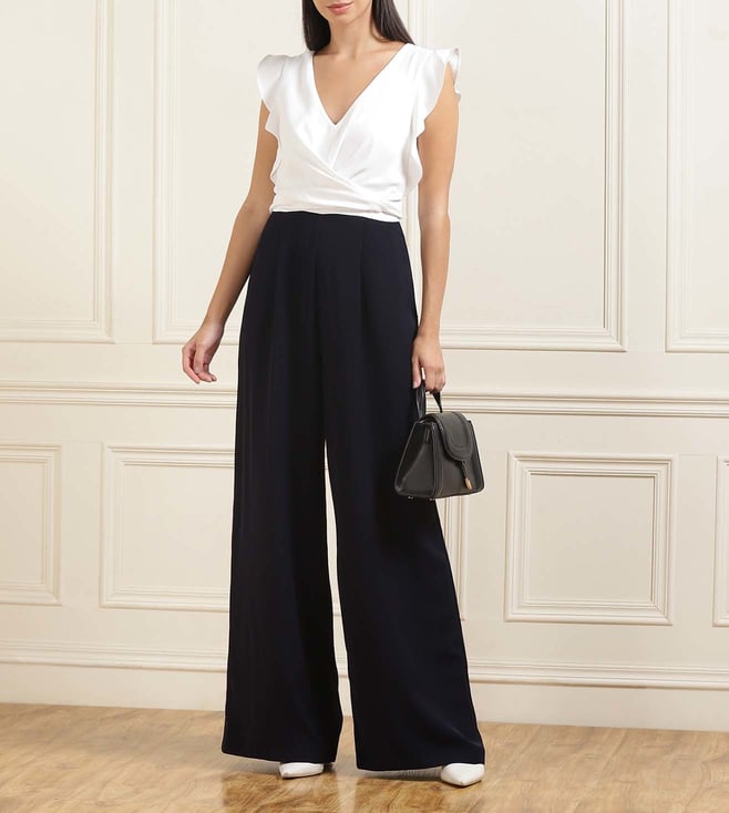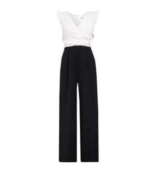 For a chic, one-and-done outfit, rely on this navy jumpsuit by Phase Eight. Enhanced by a stunning color palette, it features a plain bodice with a back knot design and wide-leg pants. Crafted from recycled polyester, it offers exceptional comfort and flatters your skin. Additionally, it includes convenient side pockets. Pair it with heels and a shoulder bag for a complete, stylish look. Phase Eight is the brand where premium quality meets contemporary design. The go-to destination for empowering, feminine style that inspires.