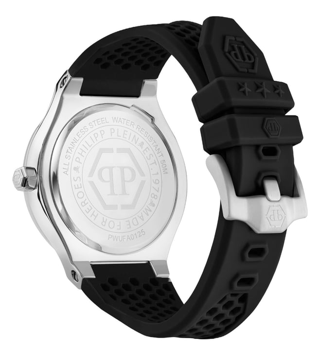Experience timeless craftsmanship with the PHILIPP PLEIN Watch for Men Analog, a true classic among water resistant watches for man Analog. Designed with a bold 44mm Black dial and a stylish Black Silicone this Mens watches model combines modern edge with vintage charm. Built for everyday wear, its Stainless Steel case ensures durability, while the 50 m water resistance makes it suitable for daily splashes and unexpected weather. The Analog watch for man runs on reliable Quartz movement, offering precise timekeeping that suits both casual outings and formal occasions.